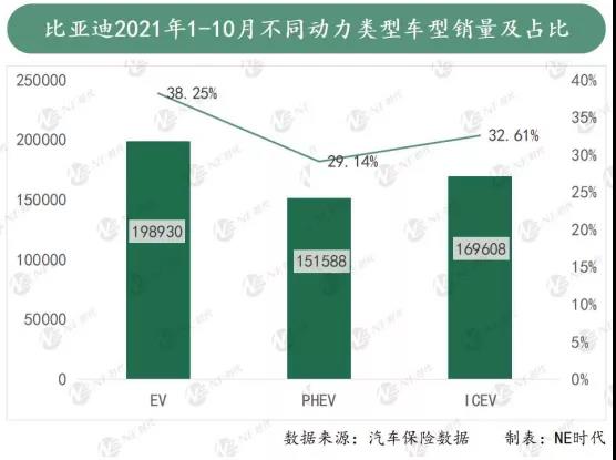 今年前十个月,比亚迪52万新车销量中,EVPHEVICEV分别占比38.25%29.14%32.61%,这应该是目前体量最大,电动化程度最高的车企。 从历年数据来看,比亚迪除了电动化程度越来越高,APHEV车型今年的增长速度也非常惊人,相较于去年全年,增长近5倍。相比之下,同级别的燃油车却出现了下滑。