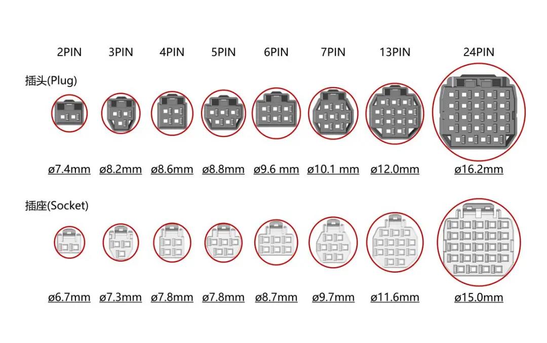 5. 芯数选型:2、3、4、5、6、7、13、24