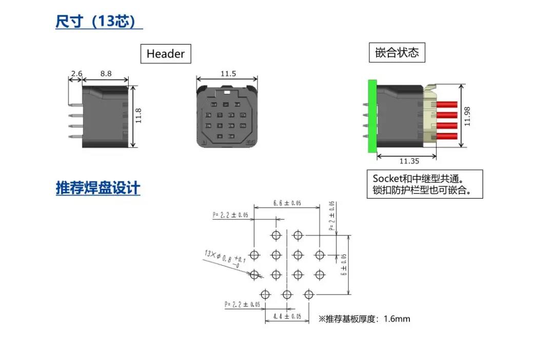 2 x 2.2 mm间距